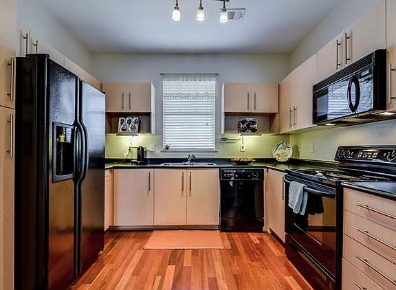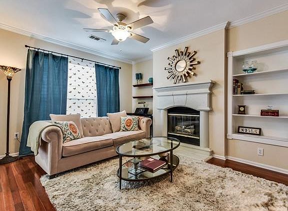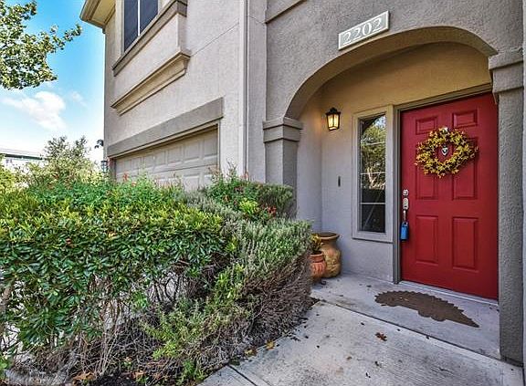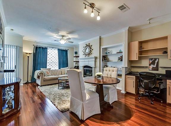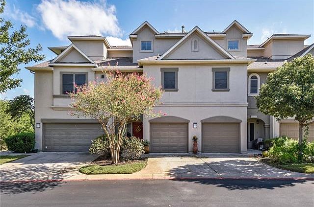This lovely condo is located in the gated community of Alicante. It boasts two master suites, one with it's own private patio with direct access to gated back yard area. Both masters have large walk-in closets that are separated by center floor of open concept living, dining, kitchen and half bath. Living room is spacious with fireplace, built in's, updated lighting and tile, Brazilian Cherry wood floors, and covered patio. Kitchen is modern in design with flat paneled cabinetry. Built in desk could also be buffet for dining. Flat Screen TV , W/D convey.Located in low traffic area at back of complex, property is more private than others. Garage for storage or parking. Located in highly sought after Leander School District. Exemplary River Place Elementary, Four Points Middle, and Vandergrift High Schools.Nice pool, gym facility, as well as community entertaining space available. HOA covers all yard maintenance, pool, spa, community areas. Seller to give a carpet allowance.