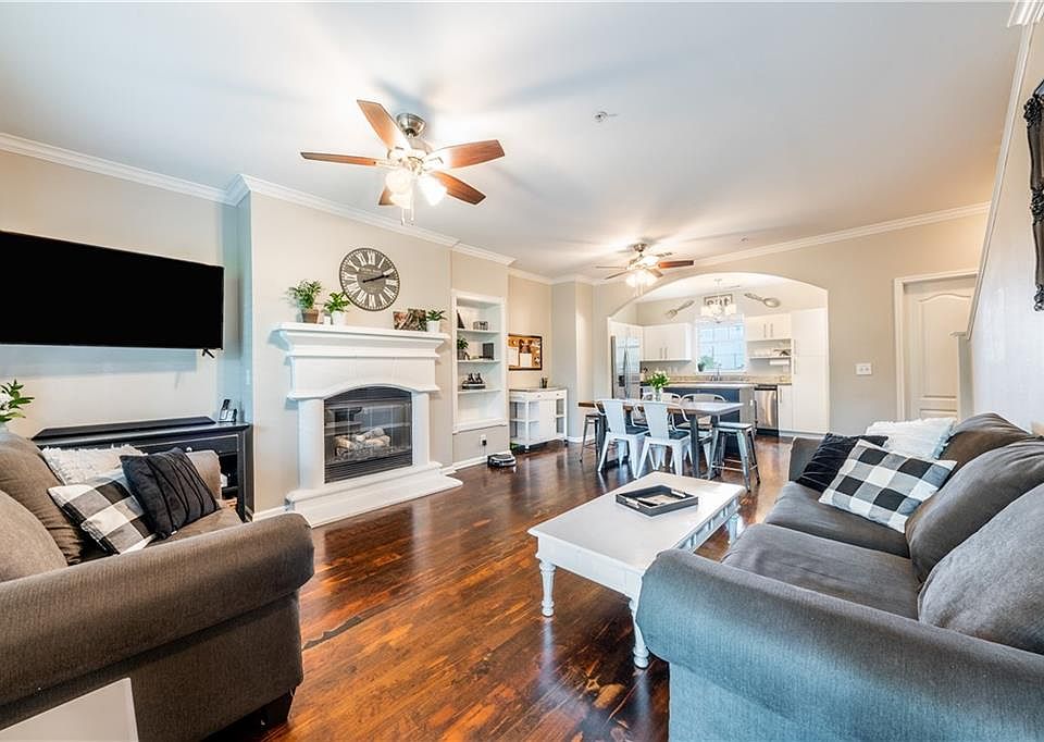 Beautiful updated 3 story condo in the highly desired gated community of Alicante Townhomes with greenbelt view. An open kitchen with updated cabinets & center island that overlooks the living room with fireplace & balcony. Both bedrooms have private updated bathrooms, generous closets & spacious vanities. Built in desk with lots of cabinetry & 2 car attached garage comes with this unit. All appliances convey. Amenities include state-of-the-art-fitness center, jacuzzi, & large community pool.