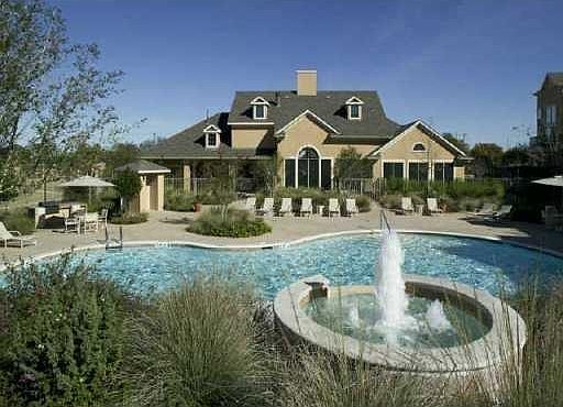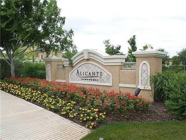 Incredible opportunity in the gorgeous, Alicante Townhomes! Located at the very front of the community, the patio overlooks the pool, through a tree-filled yard. Back stairs are mere steps to the pool! Enjoy all of the amenities offered on the lush grounds! The interior boasts a beautiful kitchen, open to the large living area. The island can be a breakfast area as well! Two car, tandem, attached garage, built in book cases. Both bedrooms have a full bath! All appliances convey! Welcome Home!