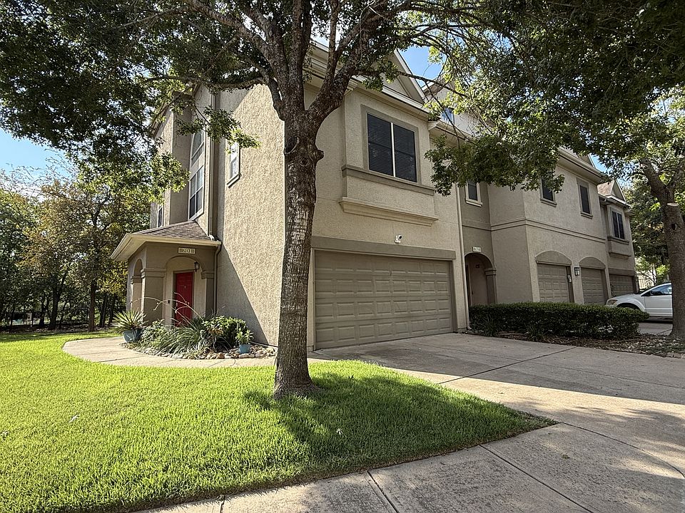 Sophisticated three-story townhome in the gated Alicante community off RR 2222 between 360 and 620. Renovated with $75,000 in upgrades (2021) and new HVAC (2022). End unit backing to a private greenbelt. First floor: Primary suite with double vanity bath, walk-in closet, washer/dryer, attached two-car garage, and patio with greenbelt view. Second floor: Open living with vaulted ceilings, gas fireplace, updated kitchen with large island and stainless appliances, dining area, second bedroom and full bath, and balcony overlooking trees. Third floor: Loft with walk-in closet, perfect for office, guest space, or second living area. Community amenities: gated access, resort-style pool, hot tub, 24/7 fitness center, clubhouse, grilling stations, pet-friendly spaces. HOA covers internet, cable, trash, and lawn care. Prime Four Points location near Lake Travis, Lake Austin, Target, HEB, The Oasis, and top-rated Leander ISD schools.