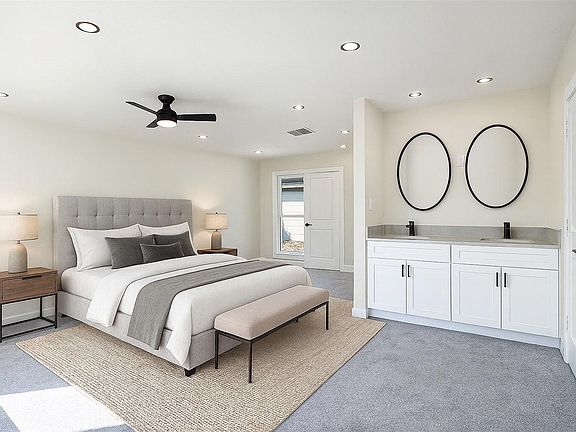 Contemporary flooringRecessed lightingStainless steel appliancesBright open living spacesFresh modern designBlack accent finishesGlass-enclosed showers