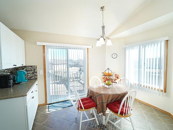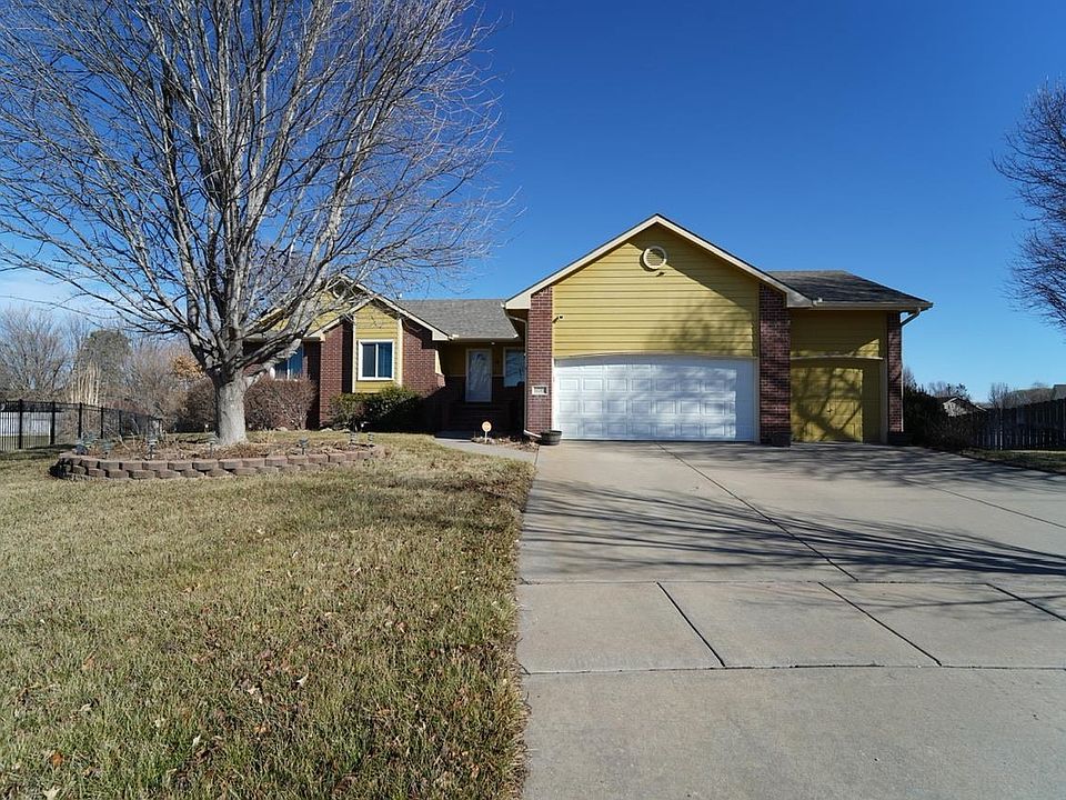 Come see this beautifully maintained home in NW Wichita! The main floor features wood flooring, vaulted ceiling, white cabinetry, tile flooring, 3 bedrooms, and two full bathrooms. The dining room has a built in coffee bar to match the kitchen aesthetic. The kitchen has stainless steel appliances. The basement features a large rec room with a gas fireplace as the focal point. It has an additional 2 bedrooms and one full bathroom. The home is a midlevel walkout that opens to a large fenced in yard with deck and mature trees. Schedule a showing today!