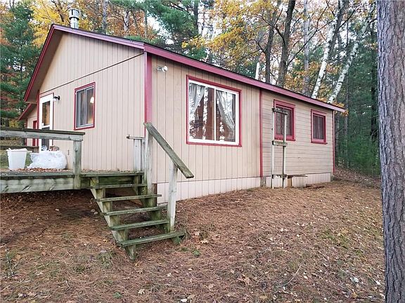 Small cabin on large wooded lot on crystal clear Blueberry Lk with sandy swimming area and impressive views. Drilled well 2016, gas fireplace living room 2016, appliances 2016. Potential to add on or up to make this your private getaway! Detached garage for boat storage or a place to put toys. Good fishing off the dock for bass, walleye, panfish, and pike. Great location next to the Chippewa Flowage and only 20 miles from Hayward. Snowmobile trail crosses the lake. Most furnishing included.