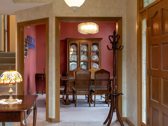 Welcome to a Kingswood Classic with Timeless Charm!! This custom-built home offers four levels of spacious living and was originally designed as part of the prestigious Kingswood Home-A-Rama. Designed with traditional elegance, it features soaring cathedral ceilings in the living and dining rooms, and a grand marble entry that sets a welcoming tone. The kitchen has been updated with stylish tile flooring, and through the sliding doors, you'll find a large wooden deck, perfect for gatherings beneath a beautifully tree. The home is surrounded by mature landscaping trees and features a lawn irrigation system for easy upkeep. Energy efficiency is top of mind with geothermal heating, and the 3-car side-load garage adds functionality and curb appeal. Located just minutes from Woodbrook Elementary, this vibrant neighborhood includes a community park and playground, sidewalk-lined streets, mature trees, and regular community events. Enjoy comfort, character, and convenience-all in the heart of Carmel.
