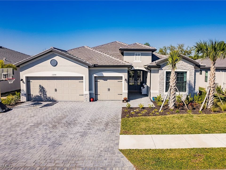 Welcome to unparalleled luxury living in the esteemed Timber Creek community with this exceptional Summerville II model boasting a 3-car garage, complete with impact windows and doors for added peace of mind. Step into tranquility and privacy with the preserve backing the property, offering serene moments to cherish while lounging on the expansive screened lanai. Inside, light-colored upgraded plank tile flooring spans throughout the home. Tray ceilings in the living room and owner's suite add a touch of sophistication to the ambiance. The Summerville II presents an open floor plan seamlessly connecting the living spaces, including a gourmet kitchen adorned with white shaker cabinetry, elegant granite countertops, and a walk-in pantry for added convenience. A true split floor plan ensures privacy, situating the owner's suite at the back of the home, with two walk-in closets and dual sinks, and a huge spa-like walk-in shower. Custom-built closets in the guest bedrooms and French doors leading to a versatile den space ensure both functionality and style. Energy-efficient ceiling fans, remotely controlled in every bedroom, lanai, and great room, enhance comfort and convenience. Premium light fixtures on dimmers throughout the home set the perfect ambiance, while the epoxy-coated garage floor adds a touch of luxury even to the practical spaces. Timber Creek amenities are unmatched, offering an indoor and outdoor full service restaurant and bar, expansive fitness center, sauna, arcade, putting green, and indoor and outdoor volleyball and basketball courts. Relax by the resort-style pool, complete with cabanas and a splash pad for children. The Timber Creek Lifestyle team even offers a variety of events spanning from live poolside music, trivia, fitness & sport court programming, food trucks, and many holiday themed events. Located conveniently off Daniels Parkway, with easy access to RSW, JetBlue Sports Park, and an array of fine dining and shopping options, this home offers the epitome of luxury living. Don't miss your chance to experience this one-of-a-kind residence – schedule your private showing today!