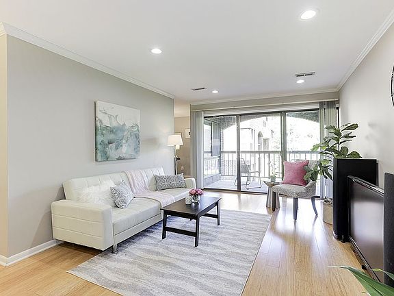 Walk to the metro, shops, and dining. This contemporary 1 bed / 1 bath home with a den is conveniently located steps from the Wiehle Metro Station and includes ALL UTILITIES in the condo fee. Walk into an oversized foyer with coat closet and steps leading you into the family room complete with recessed lighting, hardwoods throughout, and tons of natural light from the adjoined balcony. The kitchen adds style to this already chic condo with white cabinetry, granite tops, and stainless steel appliances. The formal dining is the perfect place to entertain and features a modern art light fixture. There is a dedicated den space off the kitchen which makes a great home office. The master bedroom has an abundance of space, hardwoods, glam light fixture, walk in closet, and another separate closet allowing for tons of storage. However, if you need more storage this home has an allocated storage space on the ground level, be sure to tour that as well. Finally the full bath boasts white cabinetry, sleek lighting, and spa toned tile throughout. Be sure to step out onto the balcony and enjoy the serene views of the quiet courtyard. This home is centrally located in Reston close to Reston Town Center, Hwy 267, Whole Foods, and more.