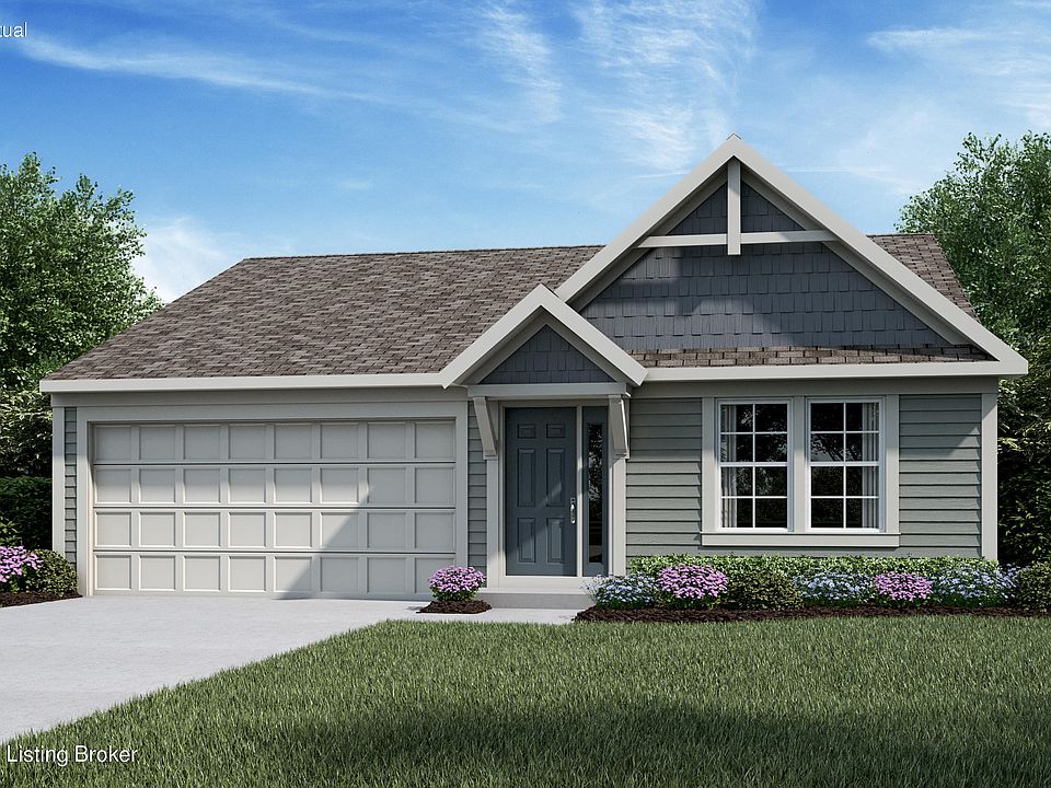 New Construction by Fischer Homes in the beautiful Heritage Creek community with the Charlotte Western Craftsman featuring an island kitchen with pantry, upgraded cabinetry and laminate countertops and black stainless steel appliances. Walkout family room all open to morning room. Primary bedroom with en suite, vanity, and tub with shower. Addt'l bedroom and hall bath. 2 car garage.