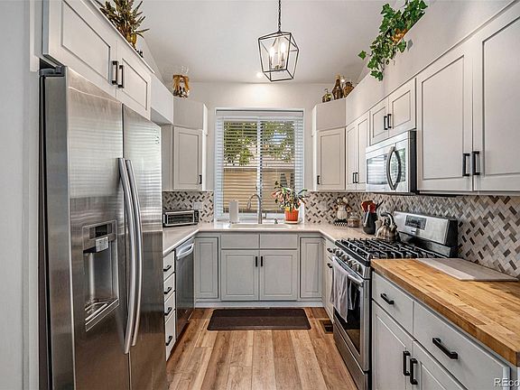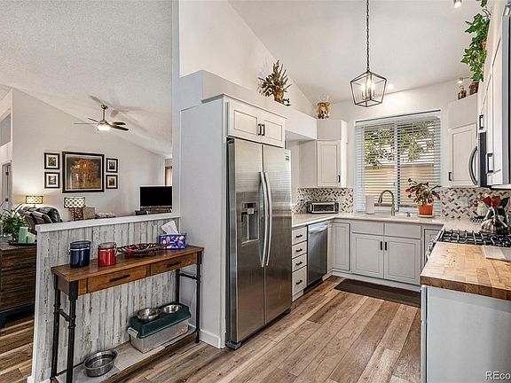 Absolutely stunning maintenance-free luxury ranch style home that is perfectly nestled in Rodeo Drive community of Aurora, Colorado. This spectacular home shows like a true model and has beautiful style and custom finishes throughout. This amazing home is perfectly located on an over-sized corner lot with a park-like setting. There is so much to see in this remarkable home. The remodeled gourmet kitchen is amazing with a compliment of Quartz and butcherblock counters, beautiful extended cabinets, upgraded lighting, decorative tile back-splash, coffee bar, extended wide plank luxury vinyl plank (LVP) flooring, and easy access to the outdoor living space. The perfectly situated dining area is the perfect space to host family gatherings or everyday meals. The large family room features a soaring vaulted ceiling with incredible architecture, cozy gas fireplace, and is flooded with natural light through the large windows. The main floor master bedroom boasts a remodeled spa-like en suite with a large shower, double vanity, walk-in closet, and a rare in-closet laundry facility. The main floor is complete with 2 large bedrooms and a full bathroom. The full basement is amazing and has been professionally finished to add a remarkable second living area. Here you will find a second guest suite with a huge walk-in closet, private laundry, bathroom, and huge family room. The basement also offers an additional flex room, and expansive storage/workshop - a must see! The outdoor living area is an entertainer's dream and ready for all season entertaining and enjoyment with the wraparound deck, hot tub, and multiple gathering areas. This spectacular home features an over-sized 2 car side-load garage, central air, one of the best corner lot/cul-de-sac locations, and more. The Rodeo Drive community is master planned and offers maintenance-free living with exterior landscape, snow removal, including driveway and sidewalks, and is close to shopping, restaurants, and highways. Hurry!