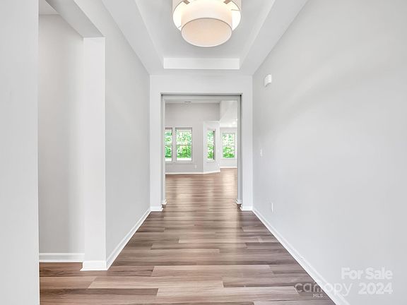 This is the only ranch home in this small charming community consisting of only 29 homes. It offers a desirable open/split floor plan of 3 bedrooms, 2 baths, a study/flex space and 2-car garage w/ epoxy flooring. Interior Flooring features luxury vinyl plank in the main living areas, tiled baths and brand new carpet in the bedrooms. The eat-in chef's kitchen is complete w/ granite countertops, under cabinet lighting, SS appliances, 5-burner gas range w/ a built-in double oven and single basin sink. Windows are sufficiently dressed w/ beautiful low maintenance custom solar shades. You will find this fabulous home sitting on a corner homesite at the front of community which also encompasses a covered patio in the back and a large "tree save area" at the rear of the property offering much added privacy. A very convenient location sitting w/in 7 minutes of Mint Hill and Sycamore Commons, a quick 15-20 minutes away from South Park, The Waverly and Uptown.