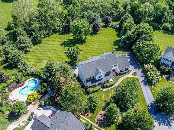 Rare opportunity at the end of cul de sac on 1.8 acres of land. MB w/ private living room and dramatic views from the en suite bathroom boasting double vanities! Large FR w/ cozy wood fireplace, an extensive updated kitchen with granite counters, upgraded stainless steel appl. and custom lighting. Formal DR, LV and Library. Finished basement w/ game room and bar. Elegant home minutes from 270!