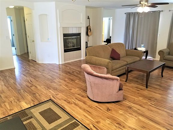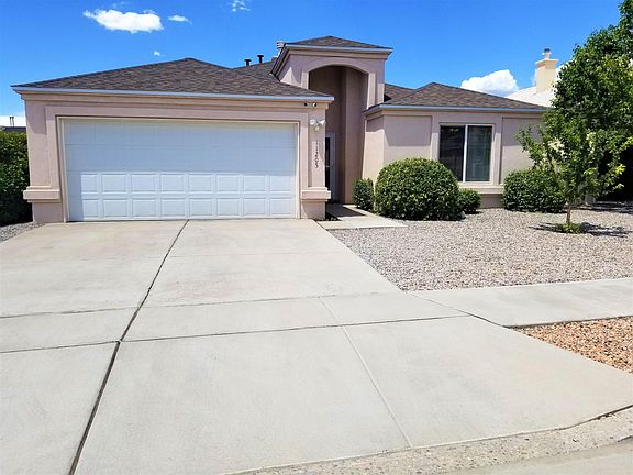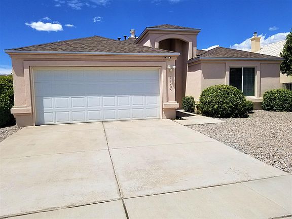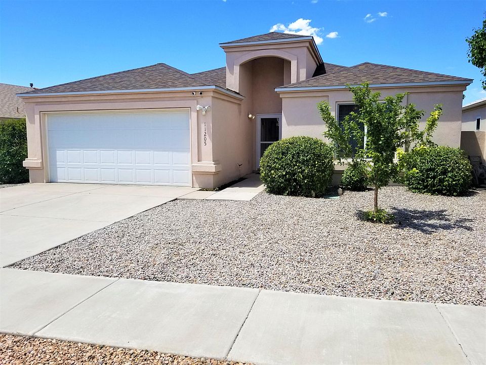 !!!Multiple offers received. Seller has requested no more showings!!!This is a super cute single story home in the desirable Mirabella Subdivision. The open floorplan starts in the oversized eat-in kitchen with a large pantry, upgraded cabinets and gorgeous granite counters. The large, airy family room with gas log fireplace is accented with a very attractive laminate wood flooring. Other amenities include a New Roof and new Mastercool in 2018, updated fixtures and vanity. The inviting interior features niches and arches throughout. Both the front and back yards are fully landscaped for easy maintenance. Finally, the location is awesome with easy access to Kirtland AFB, NE Heights or downtown, as well as schools and shopping. The place shows very well!