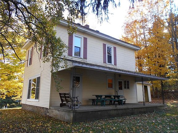 Must see! 3 Bedroom 1 Bath Home on 42.4 Acres. 2 Story home has 1708 Sq foot with partial basement and 3 car garage. Kitchen has cupboards galore!, Family Room off kitchen, huge Living Room, Large 1st floor laundry. Bath has walk-in sit down shower. 2nd floor has 3 Bedrooms with plenty of closet space. All Thermal windows, Public Water, gas boiler, Hot water baseboard heat. Open staircase. Walk in attic in part of the house and scuttle access attic in main part of house. Partial basement with cement floor and stone walls. Newer 3 car garage with cement floor and electric. Older in-ground pool is fenced in. Huge rear porch . Corner lot but very private yard. 20 acres tillable; remainder wooded. Mostly gravel soil. Great location. 1/2 mile to Route 16. Great potential and many possibilities