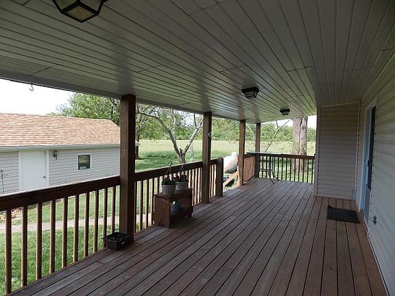 Beautiful Well Maintained Ozarks Farm has great hay fields, ponds and woods for hunting. The land has a scattering of trees and reminds you of a park the way the long driveway winds through the two ponds on the way to the house. The home was remodeled in 2001 with new windows, new HVAC and a new roof in 2014. The original hardwood floors are in great shape and in most rooms. The home has huge covered decks on 2 sides for amazing outdoor living space. The metal barn is 50 X 54 with both large doors and walk-in door.