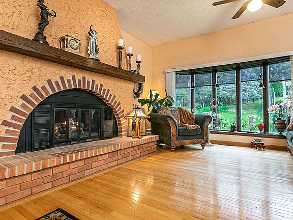 Gardeners, bird-lovers, nature enthusiasts and people craving a bit of country will surely appreciate this well-kept 1979 Spanish ranch home on the outskirts of Dubuque. Sitting atop one of the largest lots in Barrington Lakes subdivision. New kitchen glass and oak cabinetry, plus hardwood floors throughout. Main floor laundry and an oversized 2-car garage. Lower level features ample space for multiple uses, a full bathroom, a non-conforming bedroom, bonus storage, and a hobby/rec room. Almost 2 full acres of perennial gardens and mature trees. The serene back yard offers a powered waterfall, cement pad with basketball hoop, and lots of wildlife.