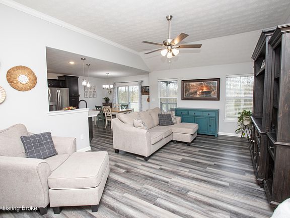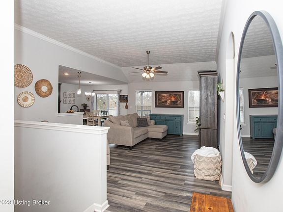Welcome to 11206 Pebble Trace conveniently located in the desirable Creekview neighborhood near shopping, restaurants and I-265. This 4-bedroom, 3 full bath home was built in 2019 and still looks and feels like a new home. The features of this home are nothing short of impressive. The vaulted ceilings and open floor plan create an airy and spacious feel, perfect for hosting gatherings or simply relaxing. The luxurious primary suite provides a private retreat with ample space and modern amenities. The finished walk-out basement offers additional living space, bedroom with full bathroom, an unfinished storage space and utility shed, as well as an outdoor patio under the deck, while the large backyard provides a private oasis to enjoy the outdoors. With four bedrooms and three full bathrooms, this home is perfect for families or those who enjoy having guests over. The spacious 12x10 deck is perfect for outdoor entertaining, while the eat-in kitchen with dark cabinets and stainless-steel appliances provides a sleek and modern touch to the home's design. Schedule your showing today because this home won't last long.