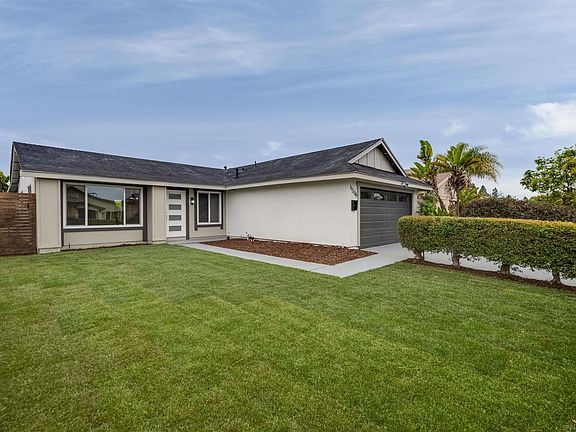 Welcome to this beautifully remodeled 3-bedroom, 2-bathroom home, where modern elegance meets functional living. The interior boasts modern finishes featuring luxury vinyl flooring, large modern kitchen, beautifully tiled showers, and designer touches throughout the open floor plan. The elegant kitchen is equipped with new stainless steel appliances, custom cabinetry, quartz countertops, and a spacious layout to host all your guests. Additional features throughout the home includes a fireplace for cozy gatherings, a two-car garage, and a new heating & AC system for the entire home! Enjoy your private little oasis with a beautiful pool and low maintenance backyard with new turf. The front yard has an all new sprinkler system with fresh sod. Located in a desirable neighborhood in Mira Mesa, this home won't last long! Close to freeways, shopping centers and tons of food. Come make this your forever home!
