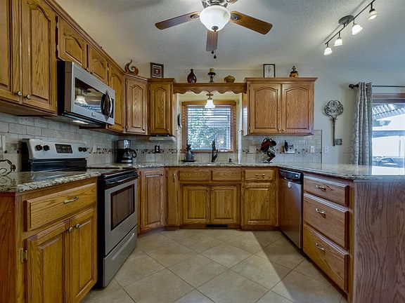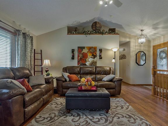 4 bedroom, 3 bath ranch that shows pride of ownership with charm and great curb appeal. Nestled in a cul de sac. Located in a desirable west side neighborhood in Maize school district. Nice open plan with vaulted ceilings, updated kitchen with granite counter tops, travertine back splash and pantry. Large dining space and bay out window. Spacious master bedroom with vaulted ceiling and walk in closet. Master bath includes a large soaker tub, separate shower and two sinks. 2 additional bedrooms and hall bath on main floor. Full finished basement with view out windows, family/rec room, brick fireplace, bedroom, walk in closet, bath and storage. Check out the large beautiful back yard with entertainment area, deck, fenced yard and shed. Sprinkler system, security system, 3 car garage, Newly painted exterior with new landscaping in front yard.