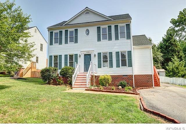 Wonderfully maintained 3 bed 2.5 bath colonial style home in the sought after Providence Creek subdivision. Home features updated kitchen with granite countertops, tiled backsplash, checkered tiled flooring, eat in area, and pantry. Spacious family room with hardwood flooring, ceiling fan, gas fireplace, and access to rear deck and patio. Laundry room with built in shelving for storage, updated half bath, and dining room with hardwood floors and chandelier rounds out the lovely first floor. Second floor boasts spacious master suite with newer flooring, walk-in closet, and private bath with tiled flooring, large jetted tub/shower combo, and newer fixtures. Two other spacious secondary bedrooms both with closets with built-ins and ceiling fans. Finished third floor with new carpeting. 3 YEAR OLD ROOF, NEW HEAT PUMP, NEW HOT WATER HEATER, fenced rear yard, paved driveway, detached storage shed, fresh landscaping,and all appliances convey with the sale. Wonderfully updated home located near both Powhite Parkway and Route 288. Just minutes from downtown Richmond as well! This home has so much to offer at an incredible value. Truly a must see. This one won't last long!!1