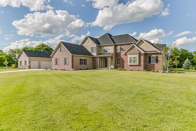 Luxury and Sunshine waits you in this 4 bedroom home with 3 and 1/2 bathes. There over 3500 sq.ft.; granite counters, soft close cupboards, built in range, double oven and mircrowave; a porch off the dining room, livingroom and master bedroom open to the large patio, master bedroom has his and her baths with a walk through shower and so much more. House features an attached 2 car garage and a big detached 3 car garage with a car lift. Full unfinish basement with entrances from house and garage that is stubbed for a full bathroom.
