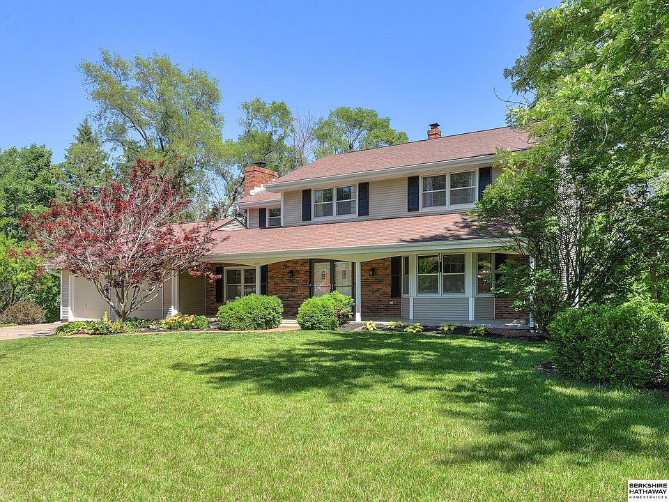 Contract Pending Looking for a home near the desired Ponca Hills area? Be sure to explore this hidden gem nestled within Country Squire Estates. This spacious 2 story home boasts 4 beds, 4 baths. Situated on a serene cul-de-sac surrounded by nature & trees this property offers a peaceful retreat with no rear neighbors. Upon entering, a warm foyer leads to a front living room with bay windows that flows seamlessly into a formal dining room. The kitchen showcases hardwood flooring, pantry, eat-in dining & breakfast bar while the family room features a cozy gas fireplace, built-in bookshelves, and access to a large deck ideal for hosting gatherings or simply relaxing. A convenient half bath completes the main floor. Upstairs, the primary suite awaits alongside 3 additional bedrooms and a guest bathroom. The lower level presents a generous rec room, wet bar area opening to a patio, a versatile flex room, updated bathroom, laundry room, and ample storage space.