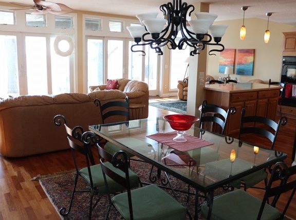 Enjoy expansive views of the beautiful Lake Wawasee from this lovely 3 bedroom, 2 1/2 bathroom home. This well-maintained residence offers an open concept floor plan -- perfect for entertaining! Watch beautiful sunsets from the upper level screened-in porch or lower level covered porch. The sandy beach is perfect for swimming, and the garage and lot across the road provide additional parking. Extra room on main level could be utilized as bedroom, den, or office. (House is being offered as furnished with a few items excluded.)