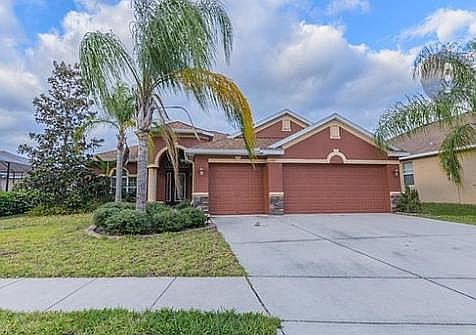 UPDATE: **ACTIVE WITH CONTRACT** Accepting backup offers only. 15 minutes to the Gulf! For Sale By Owner - 11207 Tayport Loop NPR. Back on market after previous deal feel through due to coronavirus pandemic. Located in the gated resort style community of Waters Edge is this 4-bedroom, 3 bath, 3 car garage home. Mature landscaping and stacked stone elevation accent lead you to the leaded glass front door. The formal Living room and Dining room with tile floors (on the diagonal), high ceilings and archways give the home an elegant feeling. The enormous family room and kitchen combo overlook the screened porch and large backyard. The well-appointed kitchen with Corian counters, walk in pantry, breakfast bar and an eat in Kitchen is perfect for any chef. The bedrooms are a Triple split design to assure the utmost privacy. The generous sized Master bedroom has access to the porch and a large walk in closet. Master bath has large vanity with ample storage, dual sinks, garden tub, glass enclosed shower and separate water closet. The 3 guest bedrooms are also generous sized with ample closet space as well as 2 additional full bathrooms. There is also an inside laundry room. Water's Edge is a beautiful community with a gorgeous recreation building, Fitness room, fishing pier, resort style pool with a kiddies splash pool, play grounds, tennis courts and basketball. Schedule your appointment today. 813-817-7112. $454.55 quarterly HoA required and includes cable, internet, security, trash, and all amenities. 0% Seller Agent Fee! Buyer agent flat fee! Serious inquiries only!