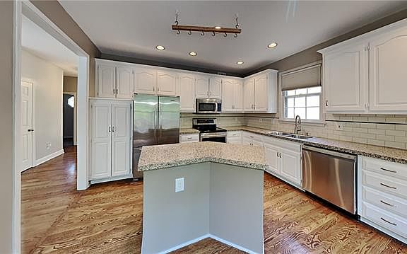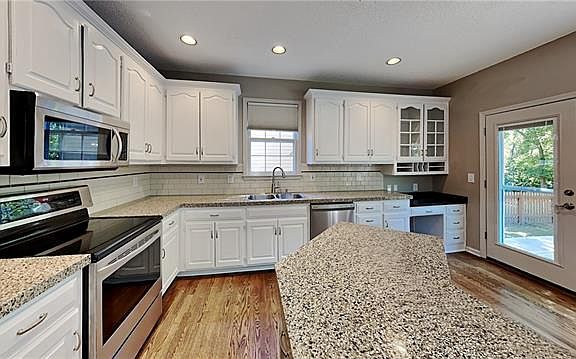 Home in Overland Park doesn't get any better than this! This spacious and gracious two story is conveniently located and updated. Your new home has a fully fenced yard BACKING TO GREENSPACE and is located near 69 highway and all the amenities surrounding 119th and Corporate Woods. NEW carpet, freshly painted exterior and kitchen cabinets await your enjoyment. Fantastic floor plan with all 4 spacious bedrooms on the second level. Plenty of room for everything family in the finished basement with built in entertainment center and wood-look tile flooring. Entertaining is made easy on the main level with the kitchen and breakfast nook opening to the living room with fireplace and adjoining formal dining room. Abundant windows on the main level allow for beautiful natural light and views of the wooded greenspace. Cobblestone neighborhood has playground and access to JOCO walking trails. Hurry, don't let this one get away!
