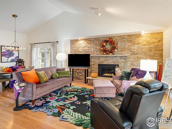 This beautifully maintained ranch-style 3-bed, 3-bath townhome offers bright well designed spaces for a modern, comfortable lifestyle. An impressive list of recent updates includes: a stunning stacked stone fireplace wall with gas/electric fireplace, beautiful hardwood floors throughout the main level; all kitchen appliances upgraded in 2021 plus granite countertops and maple cabinets with soft close feature; a complete primary bath renovation including a walk-in shower, plus new upgraded toilets in all bathrooms; recently replaced windows in living room, dining room and kitchen; new furnace, air conditioner, water heater, washer and dryer all upgraded in 2017; completely remodeled basement with new carpet and paint plus new basement egress window wells installed in 2017; electrical panel rejuvenation in 2019, a new TimberTech back patio deck; new KGuard Leaf Free 4" gutters and a new insulated garage door installed in 2023. At only $303 per month, the HOA includes a community pool. This home offers a quick two minute walk to the beautiful Vogel Pond Open Space trail system with the gorgeous Ranch Golf Course & Country Club just across the open space plus easy connections to Hwy 36 (Boulder-Denver corridor) and 1-25 (Denver-Loveland-Fort Collins corridor).