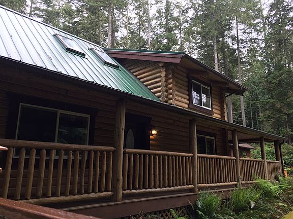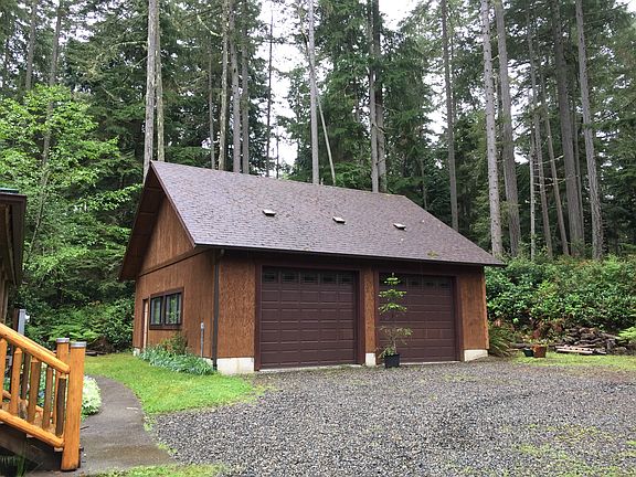Bring offers!Enchanting custom log cabin, nestled amidst expansive lot for optimum PRIVACY. Stained glass insets showcase each of the 4 upper rooms, skylight opens, floods light through the home. Yard is thoughtfully planned with raised gardens, lawn and sitting areas. Updated kitchen-high-end SS appliances stay. Updated baths/laundry. 30X30 garage has space for apartment-plumbing started/framed/loft access. 1lot is buildable. Ferry Tix for buyer for 1yr Quick walk to beach, ferry or lake.