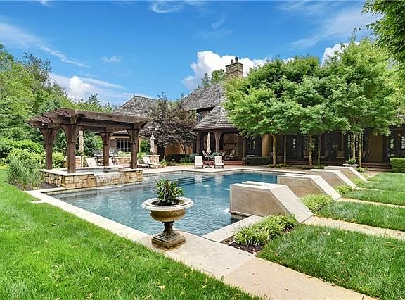 NEW TILE ROOF COMING! Ambassador Inspired 1.5 Story Masterpiece of European Elegance oozes quality. Brick front w/winding walkway through mature trees to lovely entry of imported French tiles. Upgrades abound: hand scraped floors & scraped beams on soaring vaulted ceilings. Great Room/Dining Room combination w/a wall of French Doors to bring the outside in, other features include cast stone fireplace, extensive furniture grade built-ins, butlers pantry/wet bar. Kitchen with commercial grade range, Sub Zero, Alder cabinets, ice maker, granite counters and backsplash, library beamed ceiling, pantry that accommodates a coffee bar along with extensive storage. Breakfast room with charming window seat that looks down on the perfectly landscaped yard. Heath Room features double French doors to covered patio, fireplace in hearth and patio, hand scraped floors, beamed ceiling. As you move to back of the house, there's a 2nd bedroom/bathroom, craft or mud room, side entry door. Back Hallway features imported brick. Master wing features the Office/Library with furniture grade built-ins, wool carpet, shutters & vaulted beamed ceiling. Half bath at end of the hallway. Master enjoys French Doors with access to the Stunning Inground Pool/Spa. Wool carpet, shutters. Master Bath with travertine flooring, double vanities, private water closet, tub, extra shower heads at shower, HUGE Master Closet w/Laundry, island for folding & storage. Bedrooms 3,4,5,6 are all en-suite. Full Laundry facility on 2nd floor. Lower Level features Media Room with seating. Exercise Room. Rec Room w/wet bar and fireplace. Lovely custom archways as you move from room to room. Absolutely Stunning Pool and Spa, created by Gary Bair Pools, scuppers keep water circulating and offer soothing sounds while on patios. Depth is 3.5 to 4.5 ft w/1 ft sunning deck that can accommodate an umbrella. European style Bosh of Trees to allow shade from sun. Oversized garage for pool toys + access stairs to LL. 2021-09-10
