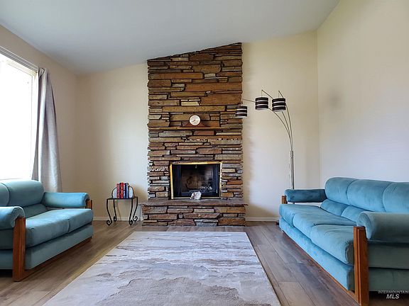 You'll love this sweetly updated home with fireplace! It has newer floors, cute island in kitchen, roomy garage, and new interior paint! This home is located away from main roads but convenient to the Boise River, Greenbelt, and Meridian. Enjoy coffee in the mornings on the cute wood deck with sunshade.