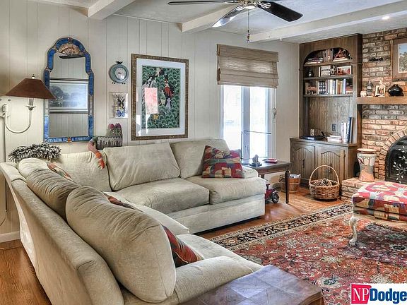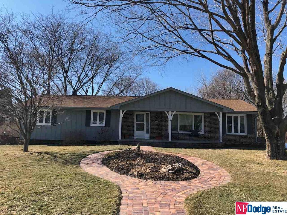 Contract Pending Wonderful home sitting on half acre lot in tranquil Country Squire Estates. Spacious living room that adjoins dining room. Hardwood flooring throughout the main level, except 3 large bedrooms with carpeting. Kitchen has abundant cabinets with underlighting lighting, planning desk, slider to patio that is sure to be relaxing! Cozy family room that features a brick fireplace with built-in bookshelves and beamed ceilings. Rec room is large with 2 flex rooms with one having built-in bookcase windows, high impact roof and HVAC high efficiency all new in 2014. This home offers easy access to either downtown or West Omaha. Very nice home.
