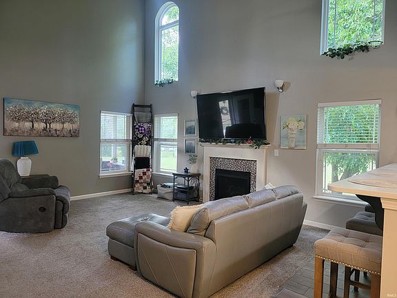 Want a beautiful home on a golf course? Here it is! Built in 2016, the main level of this home features open-concept great-room and kitchen area. Great room has soaring ceilings, gas log fireplace and tons of windows for lighting. Kitchen with quartz countertops, nice cabinets, tile floor and a bar that easily sits 4. Nice sized office/den/dining room. Beautiful foyer entry, a gorgeous screened-in sun porch that is wired for a wall mount TV. Master suite with separate whirlpool tub and walk in shower. Laundry room with a laundry chute for convenience and a half bath. Going up the lovely staircase to the quaint loft area overlooking the great room and kitchen, you will find 3 more large bedrooms and a full bath. 3 car attached garage, beautifully landscaped, nice cement patio off sun room and outstanding golf course view. New well pump 2023. Golf cart path on W. side goes with this property, sprinkler system. You can have all of this and situated on a cul-de-sac. HOA can be paid annually/semi-annually or quarterly.