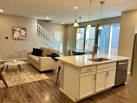 Fully furnished sort or long term Beautiful townhome in Central Park, near parks, shops and schools. On the main level there is a charming entry way with lots of storage, an open concept living room/kitchen/dining room and a half bathroom. The kitchen is well appointed with new stainless steel appliances, and quartz countertops cooking essentials and dishes provided. On the second level there is a master bed/bath with a king sized bed, one bedroom with a queen sized bed and one bedroom with a twin sized bed and a third bathroom, laundry and large linen storage closet. The master bedroom has an attached 5 piece master bathroom with oversized tub and a walk in closet. Additional space in the unfinished basement for storage. 2 car garage and fenced outdoor space. Minutes from Stanley Marketplace, Anschutz Medical Campus, University of Colorado Hospital and Children's Hospital. Minimum 1 month lease $180/day. Owner pays water, sewer, trash and exterior maintenance.