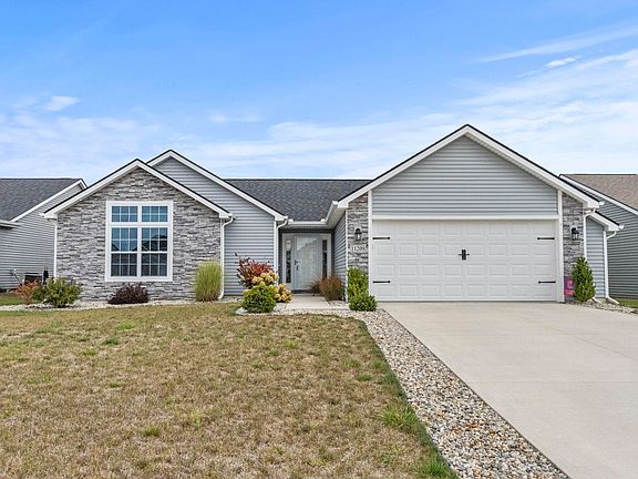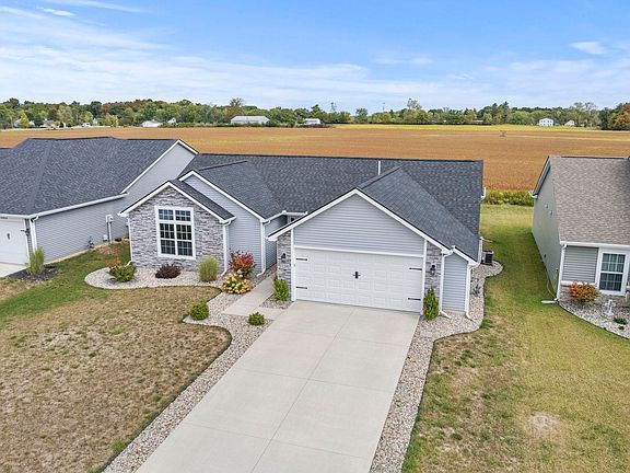 Welcome to this well maintained 3 bedroom 2 bath home in SW Allen school district! Situated in a rural setting and just minutes from the GM plant, Fort Wayne's South West restaurants and shopping & I-69. Large great room with cathedral ceiling and gas fireplace. Kitchen is nicely sized with a bar area for extra seating, vinyl plank flooring and comes with stainless steel appliances. Primary bedroom has a cathedral ceiling and walk in closet. 2 car garage with an added bump out for extra storage room. Enjoy entertaining on the covered back porch overlooking a field giving this home a "country feel". Nicely landscaped as well! Only 5 years old, this home is a MUST SEE!