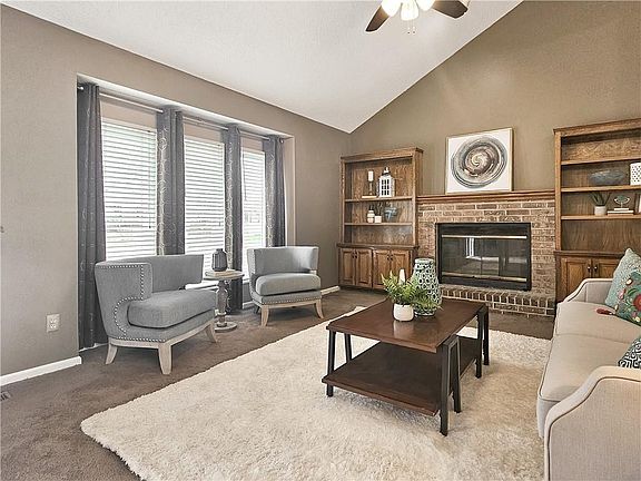 - Features: Carpet, Ceiling Fan(s), Fireplace