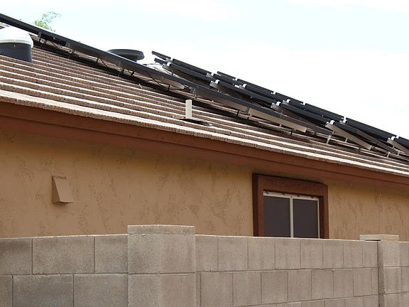 THIS HOME WILL SAVE YOU MONEY!SOLAR SYSTEM WITH 5 SOLAR TUBES SAVES OVER 90% OF ELECTRIC BILL PLUS RADIANT BARRIER FOR EXTRA INSULATION. FEATURES* 3 BEDROOMS* MASTER SUITE RECENTLY UPDATED WITH WALK IN SHOWER* PLANTATION SHUTTERS*CEILING FANS T/O * GREAT ROOM * LARGE EAT IN KITCHEN WITH BUILT IN MIRCO AND GAS STOVE* GAS DRYER HOOKUP*TRIPLE PANE SLIDING DOOR* 3 CAR GARAGE WITH 220 OUTLET,BUILT IN CABINETS, EXTRA LIGHTING,AUXILLARY BOX WITH 6 BREAKERS* PEACEFUL BACKYARD WITH COVERED PATIO, ARTIFICAL TURF,EXRA ALUMAWOOD LATTICE PATIO. THIS HOME IS MOVE IN READY!
