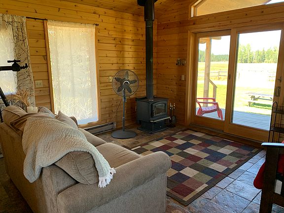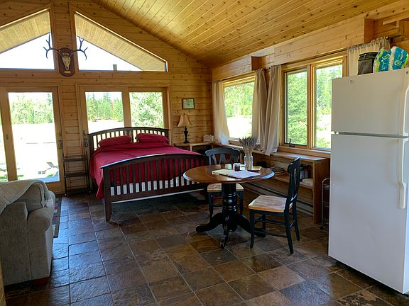 Furnished studio cabin situated on a beautiful meadow with lots of wildlife and privacy 13 miles north of Whitefish. Utilities, including Starlink internet, are included in the monthly rental amount. The studio cabin is furnished with a queen bed, a sofa sleeper, a dining table, and a full kitchen. There is a wood stove and electrical heat. There is no washer or dryer and no pets allowed. Owners live in a house on the property but not within sight of the cabin. The rental term is month-to-month and will require first moths rent and a deposit at signing. Perfect for an individual or couple.