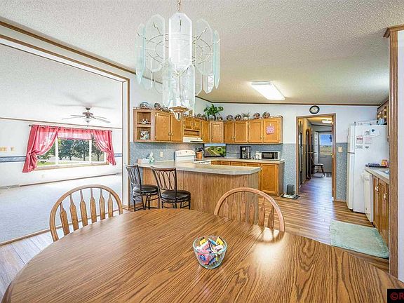 This rare gem is located on 7.29 acres just a short distance off a blacktop road. It offers a 1994 manufactured home featuring nearly 2000 square feet of living space. With 3 spacious bedrooms, an open-concept kitchen and dining room, and a primary suite with a walk-in closet plus a 5-piece primary bath, this home promises comfort and convenience. The property has several outbuildings, including a traditional barn that was once a fully operational cattle/horse barn, perfect for agricultural enthusiasts or those seeking ample storage space. Additionally, there is a versatile Quonset with a cement floor and a partitioned shop area, ideal for various projects or business ventures. A detached double garage, built in 2017, provides extra storage and parking space. The sellers also built a storm cellar which could also be used for additional storage.