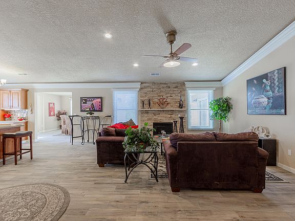 Discover the epitome of functional living in this meticulously crafted 1-story residence. Boasting 3 bedrooms and 3 total bathrooms and a 585 sq. foot workshop, this home is a masterpiece of design and comfort. As you step inside, marvel at the brand-new custom maple cabinetry, enhanced with built-in inserts, a sleek breakfast bar, and Corian-style countertops, making every meal a delight. Entertain effortlessly in the spacious great room, complete with a cozy gas log fireplace, perfect for creating warm memories with loved ones. The entire home features easy maintenance tile floors throughout, ensuring both elegance and practicality. Indulge in the owner's suite, your private sanctuary with a separate entrance, offering a prime opportunity for Airbnb hosting, making your investment work