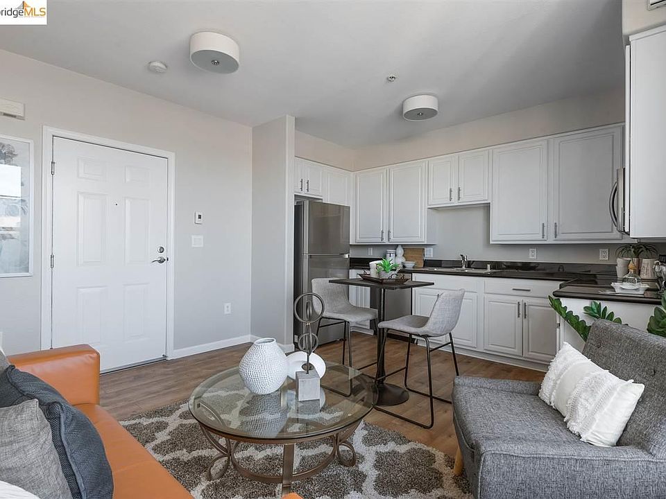 Bright, light & completely stylish top-floor condo unit in the fantastic Andante complex in the heart of Emeryville. Sun-filled 1 bedroom, 1 bathroom condo offers a fabulous open floor plan w/ updated dual-pane windows, updated kitchen with granite countertops, & stainless steel appliances, new paint, & new designer light fixtures throughout- all silhouetted by peek-a-boo views of the hills, Bay & more. Other attributes include your private in-unit washer/dryer, a large walk-in closet that could double as a zoom room or office, a gated parking garage with reserved space and a bicycle locker -not to mention space for guests to park as well. HOA amenities include a fitness center & hot tub. Located in the heart of Emeryville's shopping, dining, & entertainment district. Close vicinity to the Public Market, movie theater, pool hall/bar, Peet's, Starbucks, Trader Joe's, Bay Street Mall, Ikea, & Target. Freeway, Emery-Go-Round, & AC Transit bus stop give you super convenient access to SF!