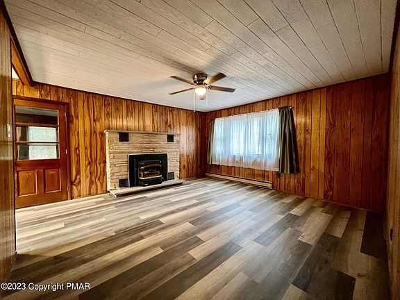 DON'T MISS OUT on this super cute 2 bedroom 1 full bath ranch style home! Sitting on over a half of an acre of privacy with an additional .25 parcel included to the left of the home, the possibilities are endless! This lovely home features a metal roof, fully updated kitchen with all stainless steel appliances. A fully updated bathroom with new tile floors and all new carpet and new vinyl floors throughout the rest of the home. The living room also features a fireplace insert, a perfect source of extra heat for those winter months. This wonderful community offers a lake within walking distance, playground, outdoor pool and so much more! Close to all the Pocono attractions, waterparks, casino, outlets, skiing and more! Schedule your private tour today!