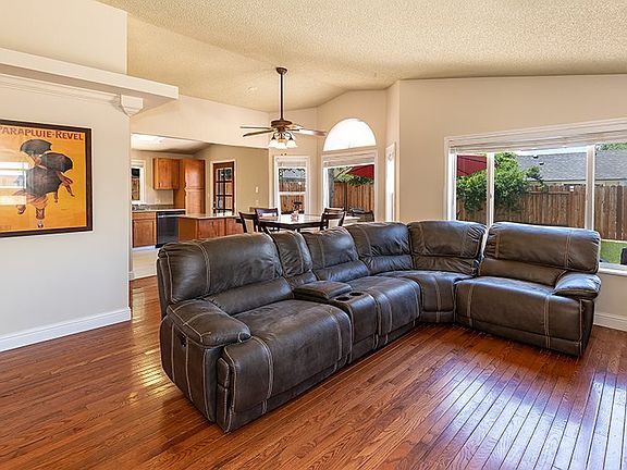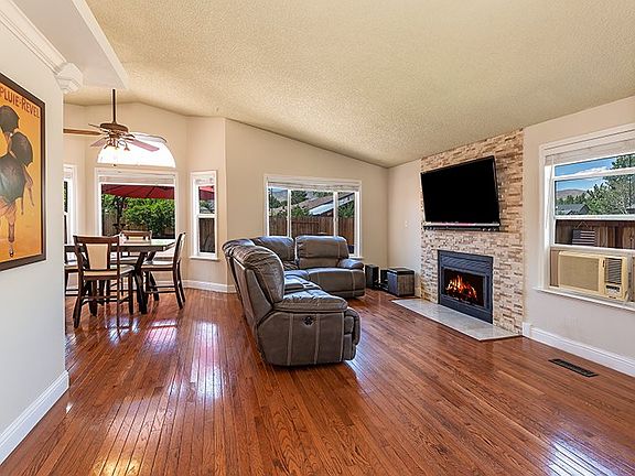 Beautifully upgraded home, perfect for a blossoming family and is move-in ready! The floor plan is an open concept and is highlighted by new contemporary paint, hardwood flooring, tall baseboards, vaulted ceilings and an upgraded stone hearth wood burning fireplace. The kitchen has all brand new black stainless steel appliances, along with upgraded counter tops and cabinetry. The backyard is custom xeriscaped with plenty of privacy, new fencing, the roof is brand new and there is fresh exterior paint.