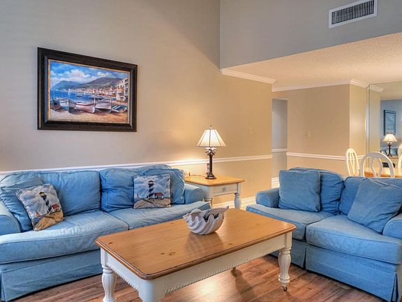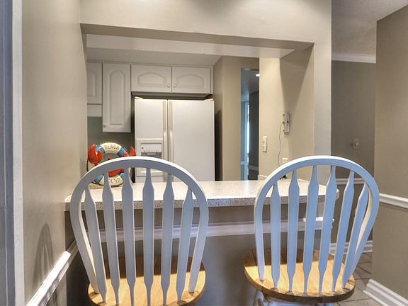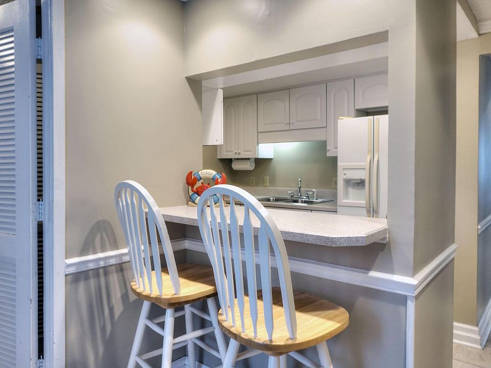 Restful, WOODED views from this furnished 2 bedroom, 2 bath OCEANFRONT Beach Walker complex condo create the perfect island get-away. The quaint kitchen has an open feel with a breakfast bar and recessed lighting. As you move from the kitchen, you will be welcomed into the living room, which features a vaulted ceiling, wood laminate floors and plantation shutters. The dining area is open to the living room with a mirrored accent wall and tile floors. A king-sized bed, wood laminate floors, balcony access and private bathroom are all included in the master bedroom. The second bedroom also has wood laminate floors, balcony access and a queen-sized bed. Near the Beach Walker community pool.