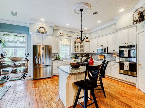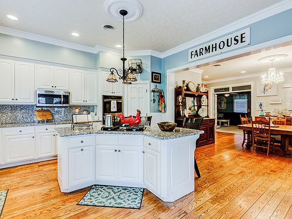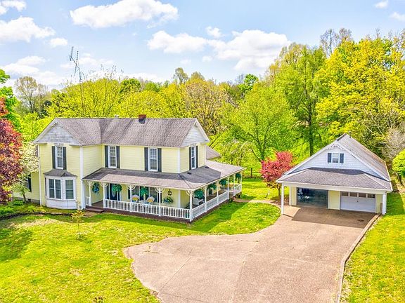 Looking for historic charm and modern luxury? This traditional, early 1900's home with a wrap around porch, 4 bedrooms, 2.5 baths, and over 3,200 sq. ft. of living space. The gorgeous farmhouse kitchen boasts granite countertops, stainless steel appliances, island/kitchen bar with gas cooktop, and 10' ceiling. The extra-large master suite is located on the first floor with a gas fireplace, bay window, two walk-in closets with organizers, double vanity sink, walk-in shower, garden tub and marble tile. Additional interior features include beautiful hardwood floors, three gas fireplaces, an original mantel, transom glass, and crown molding. Outside you'll love an oversized double detached garage with finished bonus room, exposed aggregate drive, private back deck and patio, and stunning scenic views on 27.494 acres. Property also includes 2 bd, 1 ba block home and add'l site w/ utilities.