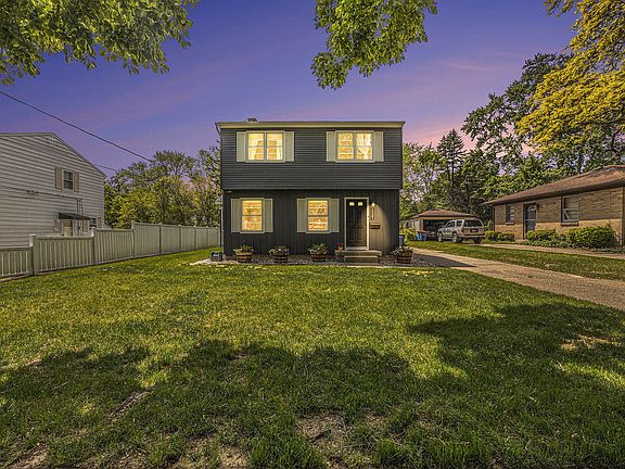 Welcome to this beautifully updated 4 bed, 2.5 bath home located on a peaceful cul-de-sac on the desirable Northeast side. Thoughtfully renovated from top to bottom, this home combines modern elegance with everyday comfort. Step inside to find gleaming hardwood floors, large windows flooding the space with natural light, and a bright open-concept main floor perfect for entertaining. The dining room features a charming bay window, while the completely renovated kitchen is a chef's dream—boasting granite countertops, stainless steel appliances, subway tile backsplash, and a stylish peninsula island with bar seating. Relax in the inviting family room with its stately wood-burning fireplace, modern black ceiling beams, and sliders that open to a spacious deck—ideal for summer gatherings. A sleek half bath completes the main level. Upstairs, you'll find four generous bedrooms and two fully renovated full bathrooms, including a serene primary suite with double closets and a private ensuite bath. The finished basement offers even more living space with a cozy family room featuring new carpet and custom built-in storage. There's also an unfinished area perfect for additional storage and laundry with washer and dryer included. Sitting on an extra-large city lot, the partially fenced backyard is perfect for outdoor living and play, and the large 2-stall detached garage provides ample space for vehicles and gear. A new roof and gutters were installed in 2021, ensuring peace of mind for years to come. No detail overlookedevery surface has been thoughtfully updated. This move-in-ready gem won't last long! Sale contingent on Sellers purchasing home known to Sellers and Listing Agent.