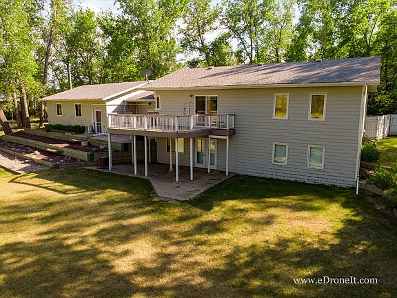 Enjoy views of the Missouri river from the deck on this 1.95 acre treed river bottom property which is well landscaped and very meticulously cared for. The spacious home was built in 2002 and includes many great features including a bay window in the living room along with a fireplace and MAIN FLOOR LAUNDRY. There is an open floor living room/dining room/kitchen floor plan with patio door out to an upper level deck with maintenance free flooring. The large kitchen has plenty of cabinets, tile backsplash and a walk in pantry closet. The master bedroom has access to the full bath with dual sinks. There is another bedroom plus an office. The lower level includes a living room and walk-out family room to the large patio overlooking the gorgeous treed lot. There are 2 bedrooms or 3 bedrooms and den or hobby room, and full bath. This home offers an ECONOMICAL GEO-THERMAL heat pump system and pump and pressure holding tank for artesian well. There is a breezeway sitting room area connecting the HUGE 1200 sq ft Triple+ garage that features epoxy floor, floor drain, insulation, heat, workbench, 220 amp service, overhead doors and more!. There is cement board maintenance free siding. The Landscaping is outstanding and just a block to the Missouri River!