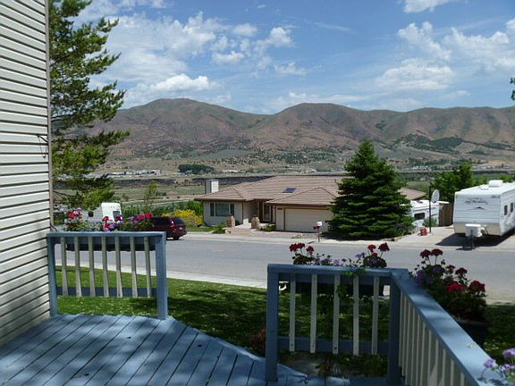 Beautiful 2 story home in South Pocatello. This home is on a large corner lot and features a large 3 car garage, full landscaping with curbing, finished deck, sprinkler system and garden areas. In addition, this home has a large open kitchen with solid counter tops, large windows in every room, a formal dining room, and a den/office on the main floor! Upstairs the bedrooms are all generous in size and the master bedrooms features enormous vaulted ceilings, walk in closet, laundry area and huge master bathroom with a jetted soaking tub and seperate stand up shower! This home also has amazing views of the portneuf valley overlooking trees and mountain sides!