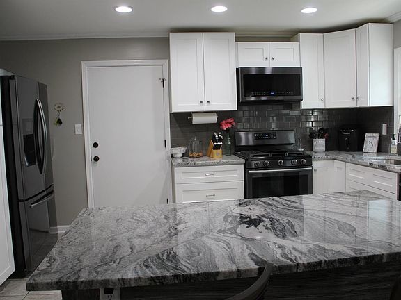 Don't wait to see this All brick ranch with mature trees on large lot!! The kitchen, dining area and living room all remodeled and is absolutely beautiful! Kitchen consists of black stainless appliances, granite countertops and beautiful cabinets and lots of tile on walls and floor. Yard is fenced with pool and sits on extra large corner lot with very nice above ground pool and deck surround. Patio has nice awning type light filtering covering which will stay.