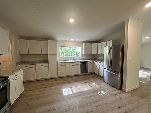 Welcome to this cute updated and remodeled home that is nestled on a permanent foundation in the country on an acre of land with professional landscaping. This 4 bedroom, 2 bath home features new LPV flooring, cabinets, stainless steel appliances, interior and exterior doors, paint & decking. The home also includes a new septic system. Not many out there like this one - call today to see!